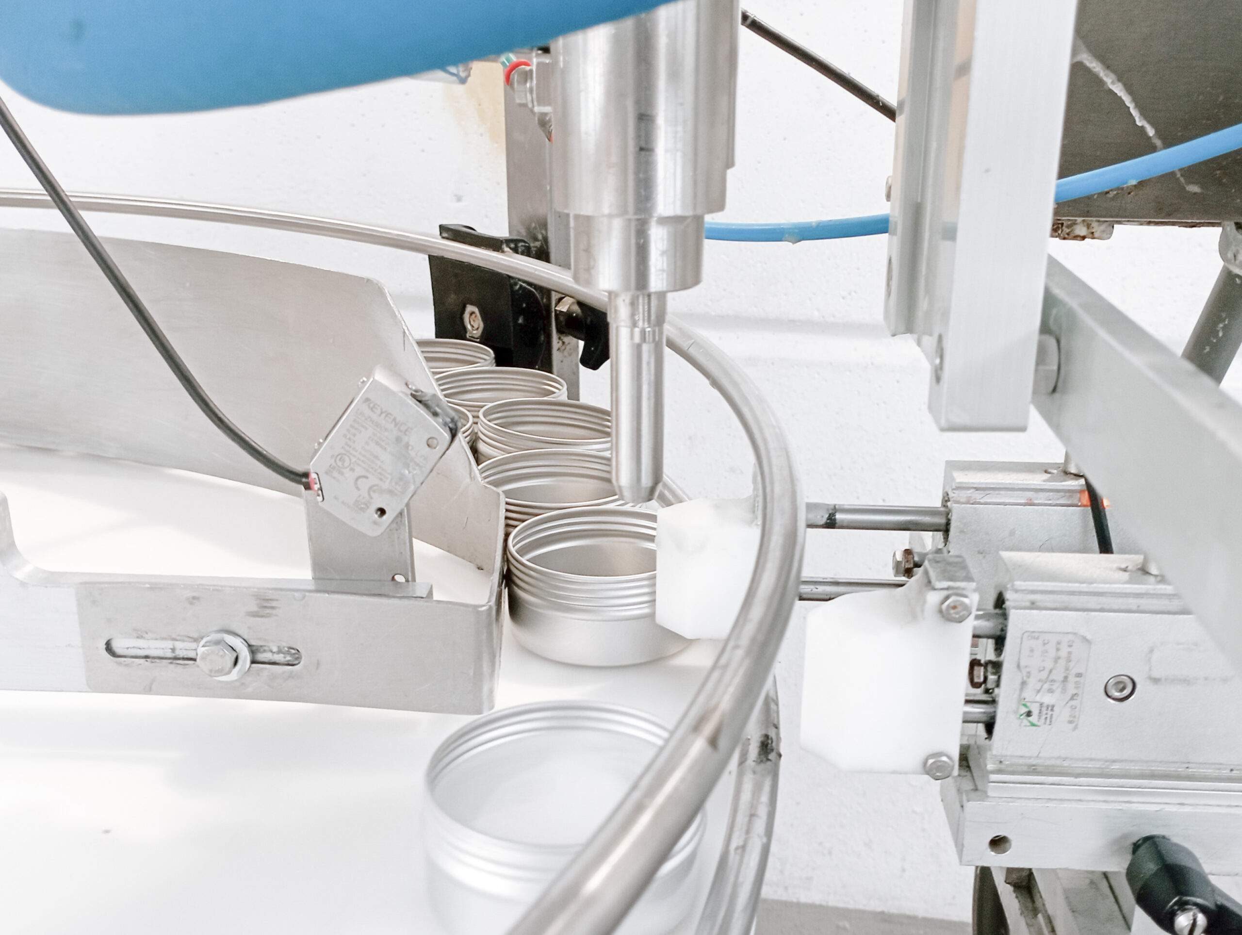 Mentre il bulk viene continuamente miscelato, per evitare che si formino grumi in superficie, la macchina semiautomatica “dosa” direttamente il contenuto all’interno del vaso o del flacone. Successivamente il prodotto viene portato in una cella frigo per la necessaria procedura di raffreddamento.